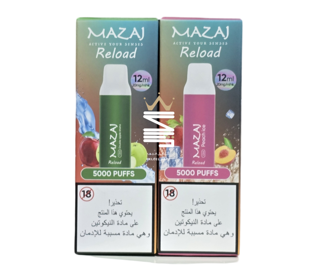 💨✨ استمتع بتجربة فيب متطورة مع بودات MAZAJ RELOAD 5000 المصممة خصيصًا لعشاق النكهات القوية والأداء العالي!