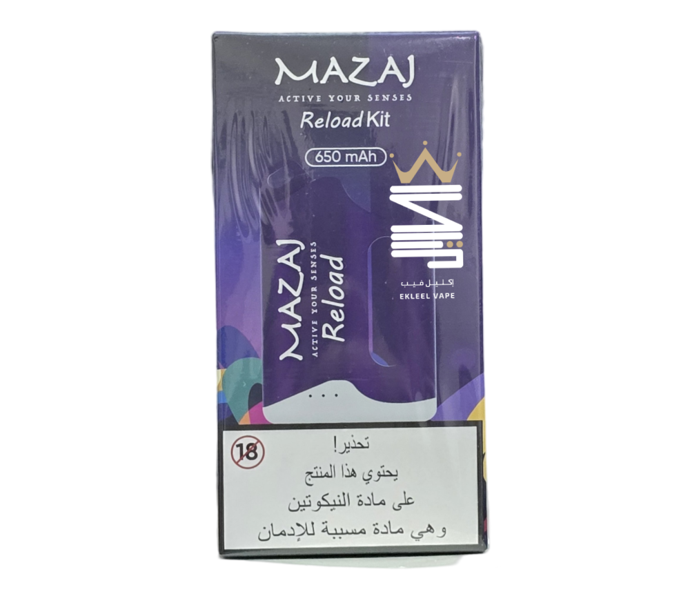 جهاز مزاج ريلود من شركة مزاج هو جهاز فيب أنيق وعصري، مصمم ليمنحك تجربة تبخير سلسة ومريحة. يتميز بسعة بطارية 650 مللي أمبير، مما يضمن أداءً يدوم طويلاً، مع إمكانية إعادة الشحن بسرعة وسهولة عبر منفذ USB-C.